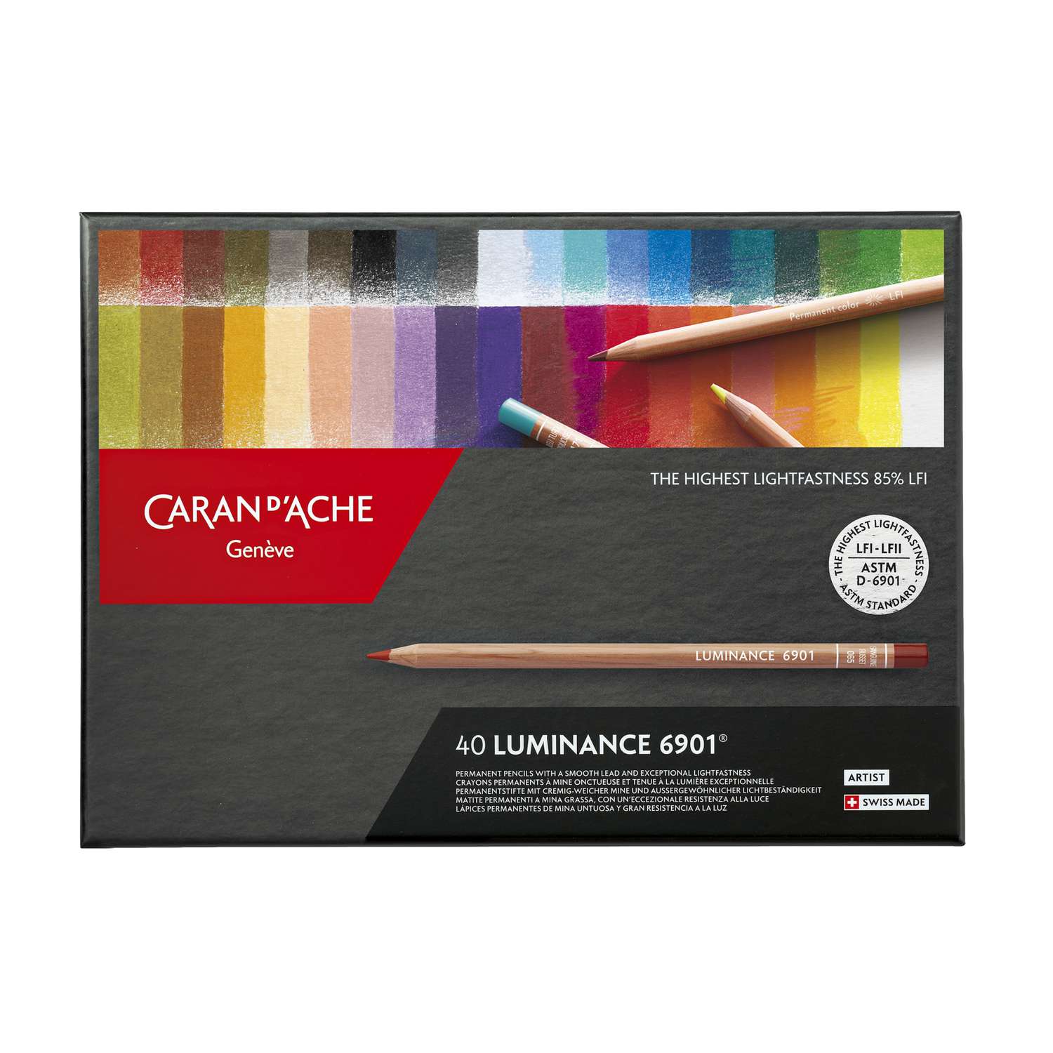 Die CARAN D'ACHE Farbstifte-Sets Luminance 6901 Standardsortimente sind in verschiedenen Ausführungen erhältlich.