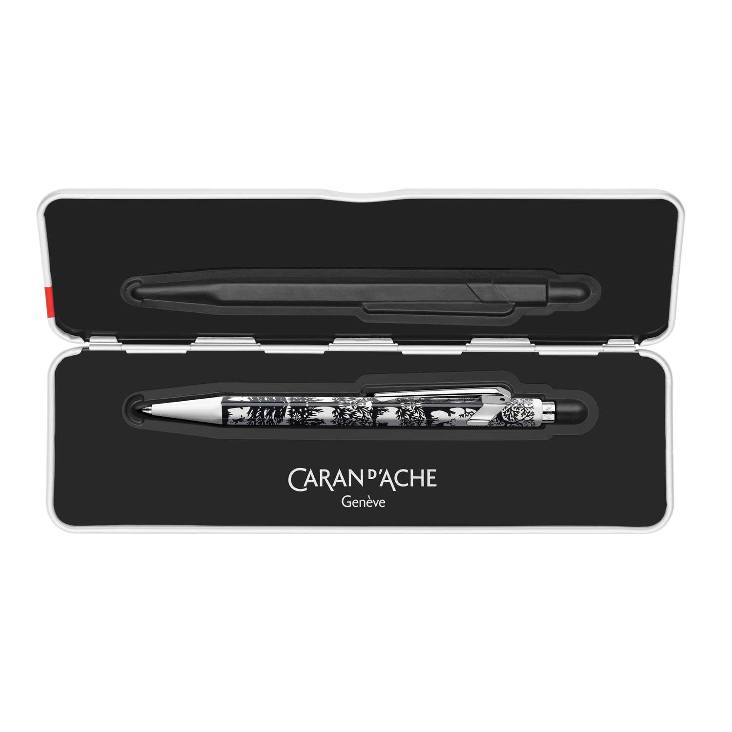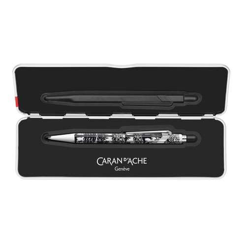 Der CARAN d’ACHE® Kugelschreiber 849™ Scherenschnitt mit Etui ist eine Design Edition der ikonischen 849-Serie von CARAN d’ACHE. Das sechskantige Metallgehäuse greift das Scherenschnitt Motiv als dekoratives Gestaltungselement auf und verbindet es mit der klaren, funktionalen Formensprache der Serie.