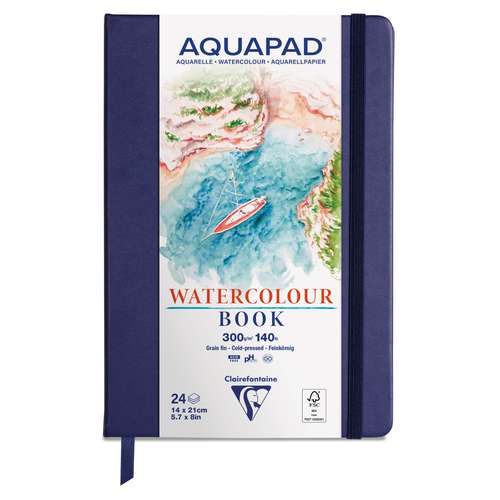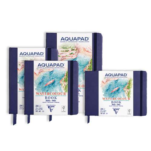 Die Clairefontaine AQUAPAD® Hardcover Aquarellbücher sind ideale Begleiter für kreative Arbeiten unterwegs oder im Atelier. Sie vereinen hochwertiges Aquarellpapier mit einem eleganten, robusten Einband und bieten Künstlern Komfort und Zuverlässigkeit in jeder Situation.