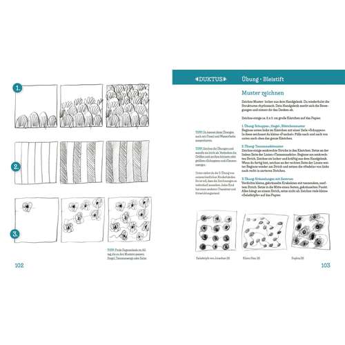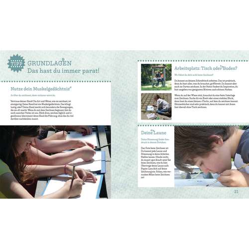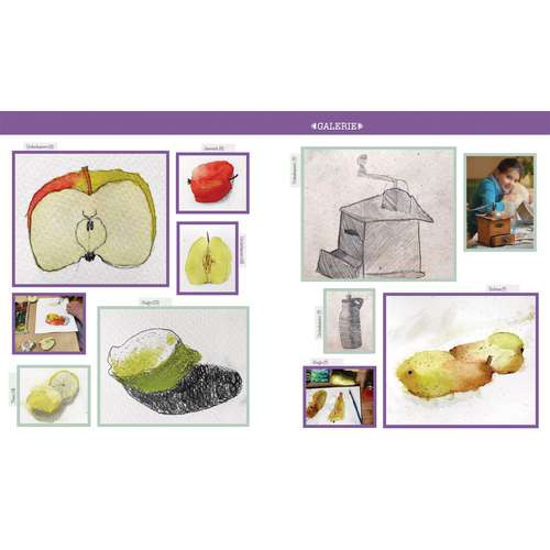 Ausgangspunkt ist ein reales Objekt, das die Kinder betrachten und haptisch erkunden. Übungen mit Bleistift und Pinsel zu Linien, Schraffur oder Farbverläufen trainieren die unerfahrene Hand und machen Mut, die Zeichnung anzufangen und weiterzuentwickeln. Auch wer lieber draußen zeichnet oder seine Zeichenkünste vertiefen möchte, findet viele Hinweise und Ideen.