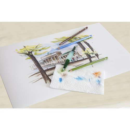 Für optimale Aquarelleffekte, empfiehlt sich die Verwendung von Aquarellpapier. Ideal sind Aquarellskizzenbücher für spontane Skizzen unterwegs.