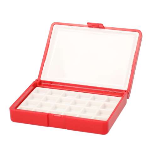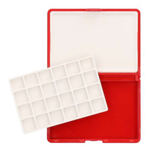 - Kompakter Aquarellkasten aus rotem, robustem Kunststoff