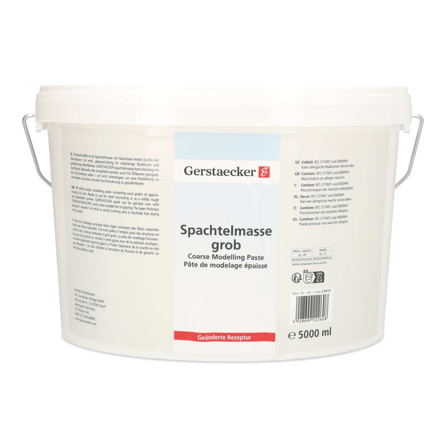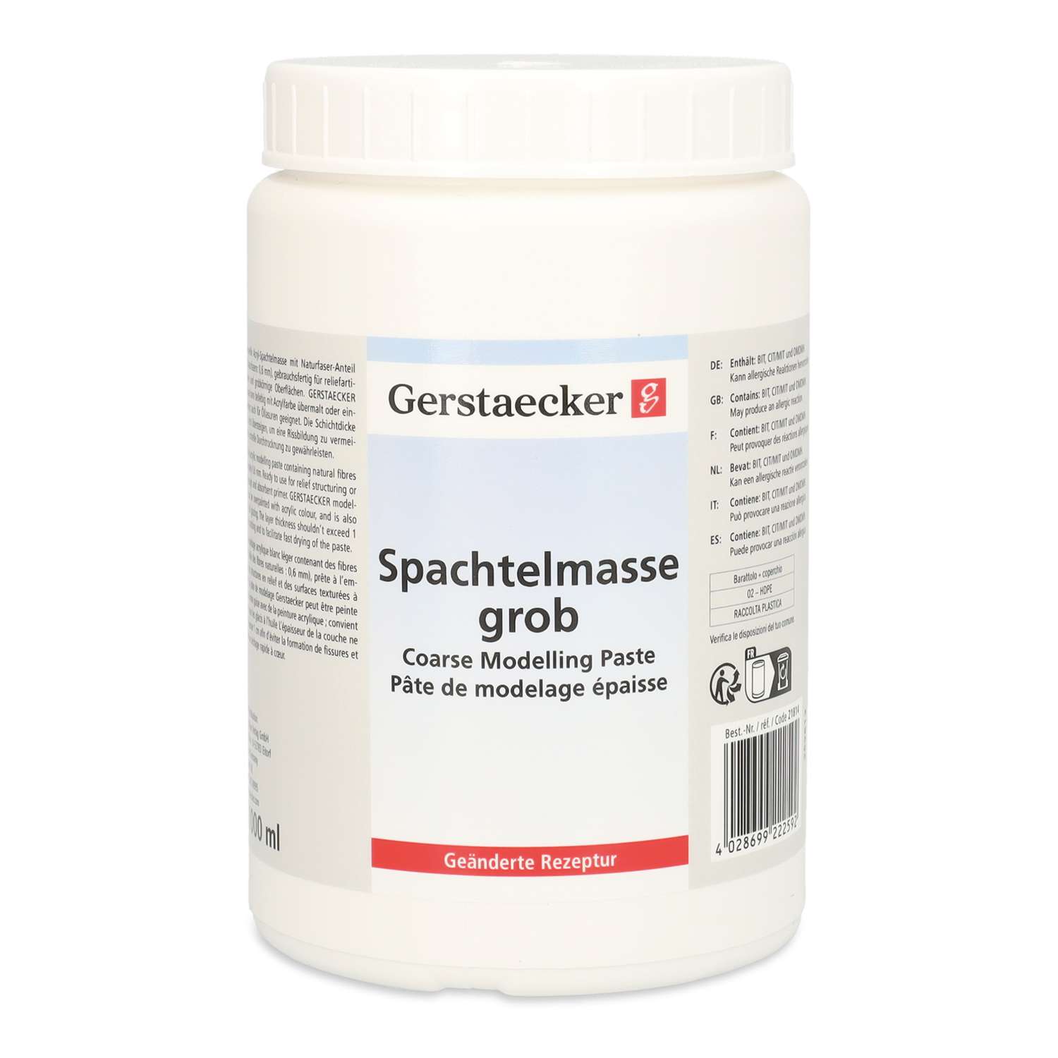 Die GERSTAECKER Spachtelmasse grob überzeugt durch ihre schwachweiße Farbe und den natürlichen Faseranteil. Dank der groben Struktur mit Naturfasern (0,6 mm) ermöglicht sie einzigartige reliefartige Oberflächen und feinsandige Grundierungen. Die gebrauchsfertige Acryl-Spachtelmasse lässt sich direkt auf festen, schwachsaugenden Untergründen verarbeiten und bietet kreative Freiheit bei der Weitergestaltung.