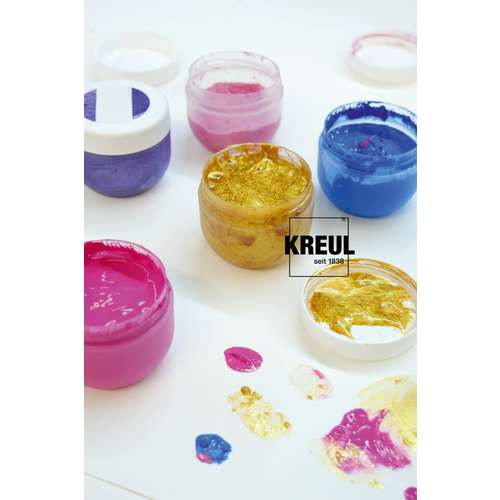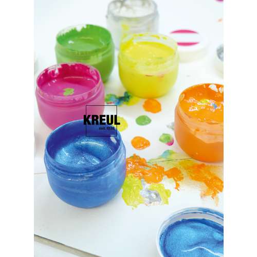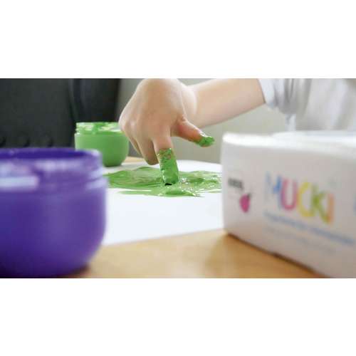 Das KREUL MUCKI Fingerfarbe Set umfasst sechs cremige Fingerfarben, die speziell für Kinder entwickelt wurden. Die wasserbasierten Farben lassen sich leicht mit Fingern oder Pinseln auftragen und bieten eine gute Deckkraft. Zwei Varianten des Sets stehen zur Auswahl. Das Glückskinder Set enthält die Farbtöne Gelb, Pinke Diamanten, Blau, Grün, Orange, und Drachen Silber. Das Königskinder Set umfasst die Farbtöne Weiß, Feenstaub Rosa, Pink, Violett, Blau und Goldschatz. Beide Varianten sind vegan und dermatologisch getestet und lassen sich ab 30 Grad aus Textilien auswaschen. Die cremige Konsistenz unterstützt frühe Malerfahrungen und kreative Aktivitäten im Kindergarten in der Schule und zu Hause. Die Farben eignen sich für glatte Papiere Karton und viele Basteluntergründe.