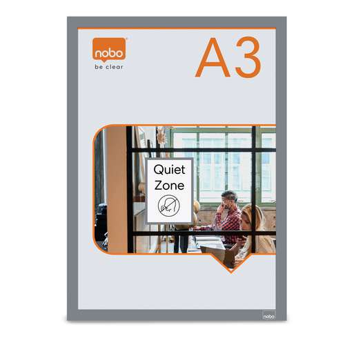 Die LEITZ Nobo Posterrahmen sind selbstklebende Magnetrahmen für die sichere Präsentation von Postern, Schildern und Informationen. Die Posterrahmen sind silberfarben und werden im 2er-Set geliefert.