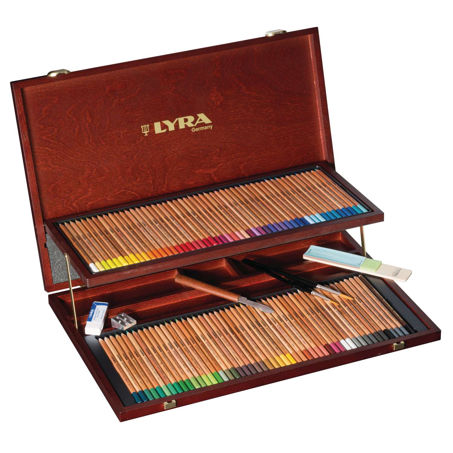 LYRA REMBRANDT® Aquarell-Farbstifte im Holzkoffer, mit 96 Aquarellfarbstiften