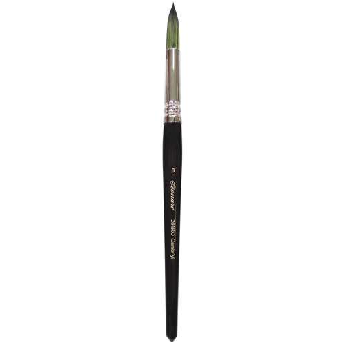 Die reaktionsfreudigen Fasern ermöglichen ein direktes, sensibles Arbeiten, während die lange vernickelte Messingzwinge Stabilität verleiht. Der kurze schwarze Stiel sorgt für eine angenehme, kontrollierte Handhabung.