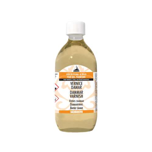 Der MAIMERI Dammarfirnis ist ein traditioneller Schlussfirnis für die Ölmalerei. Er basiert auf Naturharz Dammar, das in Terpentin gelöst wird, und verleiht Gemälden nach dem Trocknen einen gleichmäßigen Glanz. Der Firnis intensiviert die Farbtöne, erhöht die Tiefenwirkung und schützt die Oberfläche vor Staub, Schmutz und Feuchtigkeit. Er zeichnet sich durch eine transparente bis leicht gelbliche Tönung aus und bringt die Leuchtkraft der Farben zur Geltung. Als reversibler Firnis kann er bei Bedarf mit Terpentin wieder entfernt werden. Wie alle Dammarfirnisse neigt er im Laufe der Zeit leicht zum Vergilben. Für ein optimales Ergebnis sollte der Auftrag erst erfolgen, wenn das Gemälde vollständig durchgetrocknet ist.