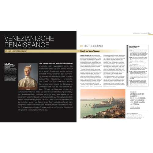 Die Geschichte der bildenden Kunst wird in diesem reich illustrierten Band entlang einer klar strukturierten Zeitleiste präsentiert – informativ, übersichtlich und visuell eindrucksvoll. Über 500 Zeichnungen, Gemälde und Fotografien führen durch zentrale Epochen, Stilrichtungen und kulturelle Kontexte der Kunstgeschichte. Jede Epoche wird durch einführende Übersichtsseiten zu prägenden Strömungen und Einflüssen erschlossen.