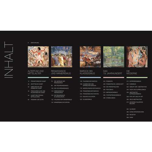 Reise durch die Geschichte der Kunst entlang einer informativen Zeitleiste mit über 500 Abbildungen. Umfangreich, verständlich, reich illustriert