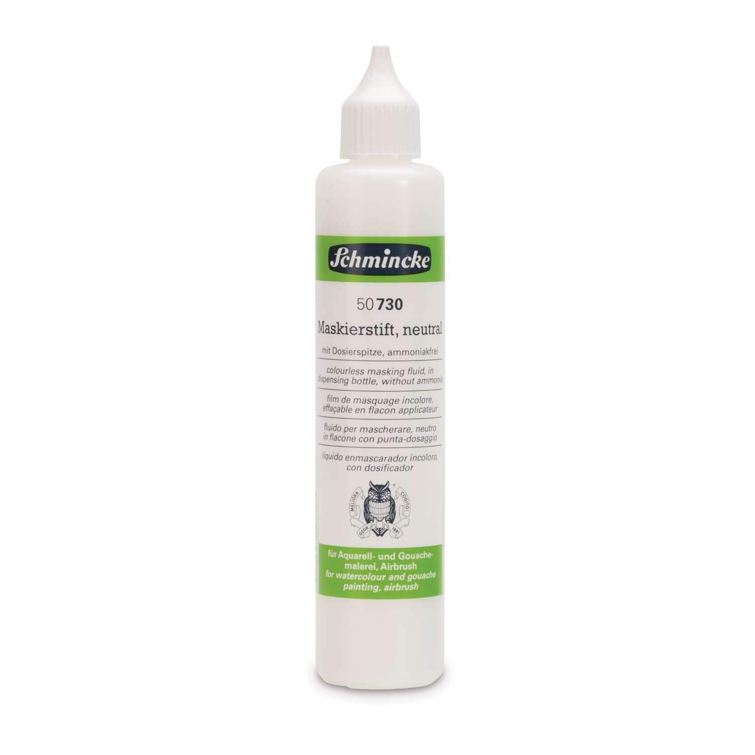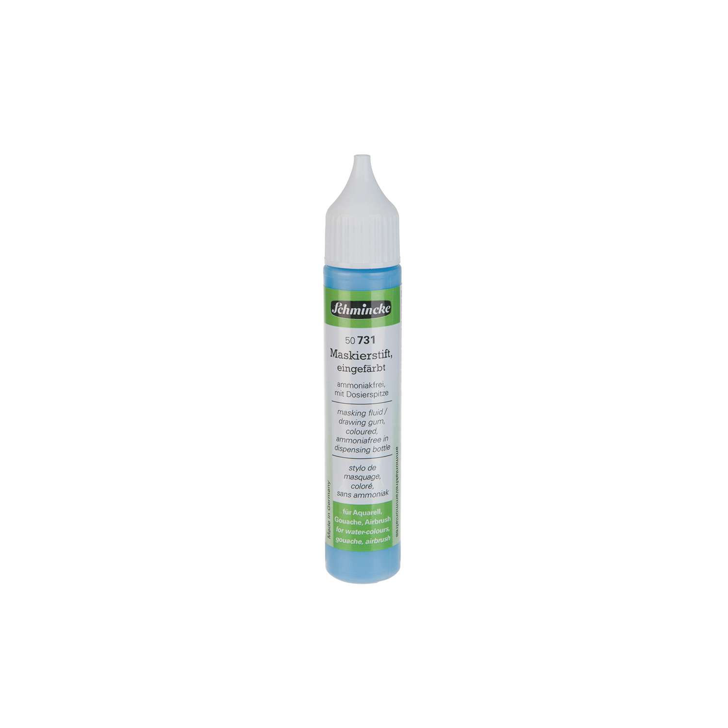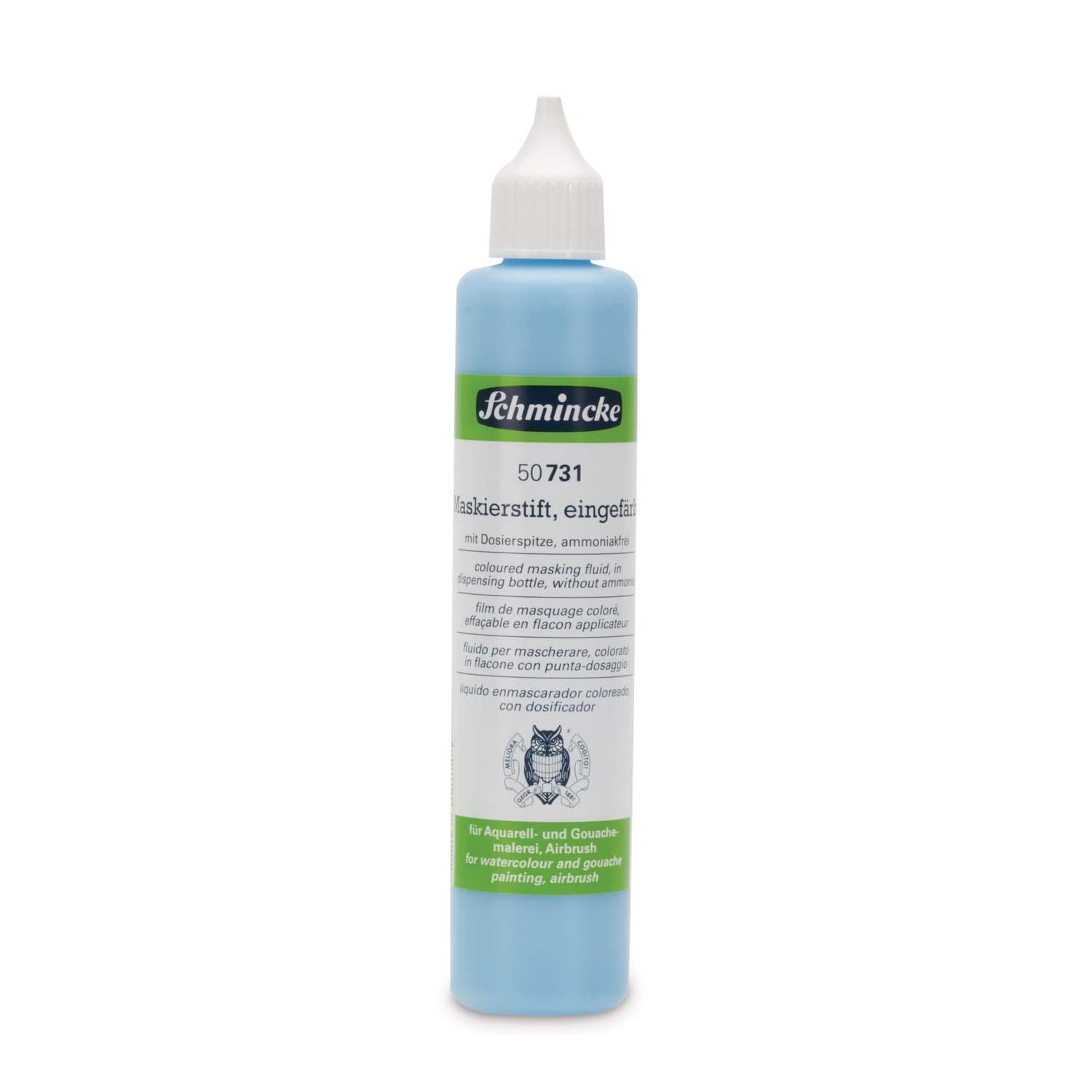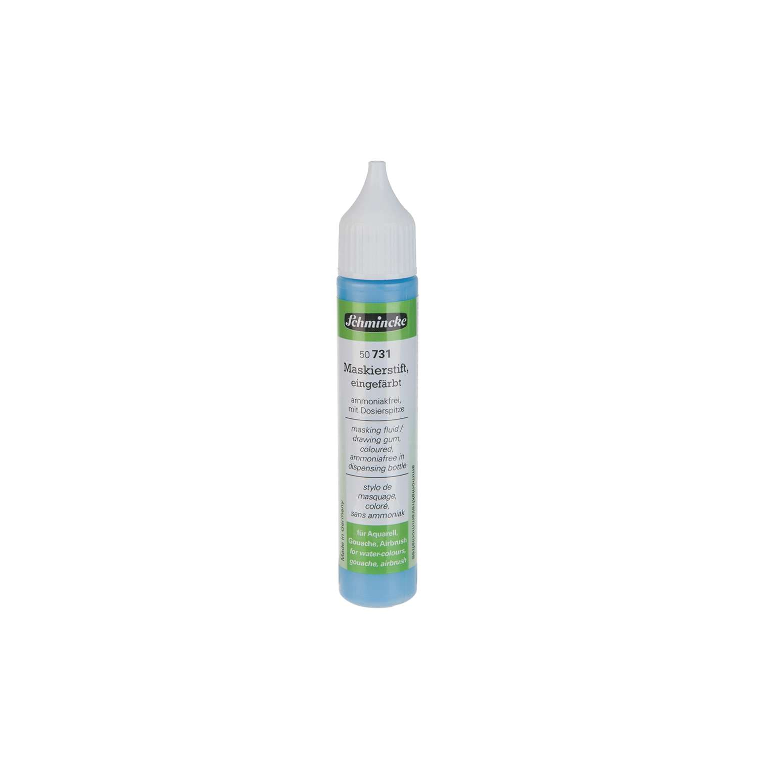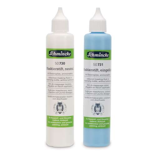 Der Maskierstift von SCHMINCKE ist eine wieder entfernbare Maskierflüssigkeit speziell für Detailarbeiten. Auszusparende Details werden mit dem Maskierstift vorgezeichnet und nach Trocknung mit Aquarellfarben übermalt. Auch für dünne Acrylfarben und Airbrush ist der Maskierstift geeignet.