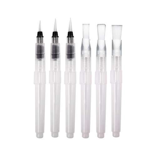 - 6 Wassertankpinsel in verschiedenen Spitzenformen und Größen (1 mm bis 15 mm)