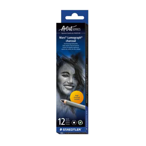 Der STAEDTLER® Mars® Lumograph charcoal Kohlestift ist ein holzgefasster Zeichenkohlestift für Zeichnen, Skizzieren und Schattieren. Er gehört zur Mars®-Qualitätslinie und wurde für präzise Zeichenarbeiten mit hohem Schwarzgrad entwickelt.