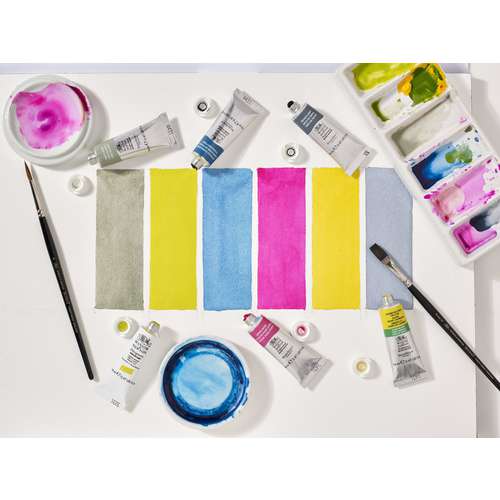 Die WINSOR & NEWTON™ Designer Gouache verfügt über ein umfangreiches Sortiment von opaken Aquarellfarben. Es ist hervorragend geeignet um Designs, Illustrationen und klare, leuchtende Bilder in soliden Farben zu gestalten. Darüber hinaus wird es in der Kunst weithin als opake Aquarellfarbe verwendet.