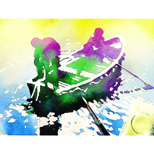 Malmittel für die Aquarellmalerei. Das permanente Maskiermedium deckt das Papier ab und macht es wasserbeständig.