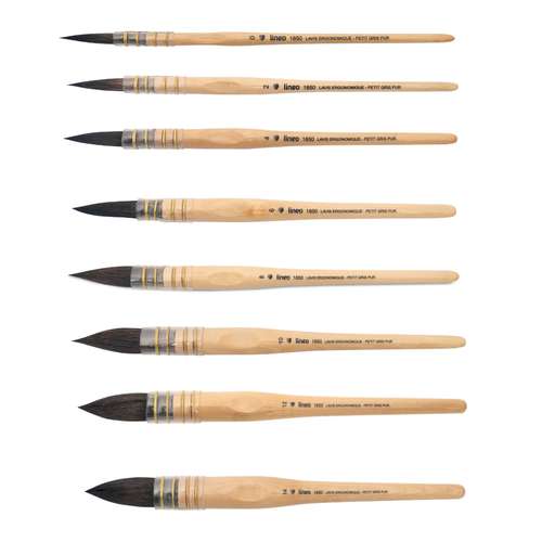 Die lineo Serie 1850 umfasst hochwertige Verwaschpinsel, die das unvergleichlich weiche und präzise Malgefühl von 100 % reinem Natur-Fehhaar bieten – vollständig ohne synthetische Anteile – und aus hochwertiger deutscher Zurichtung stammen. In Deutschland gefertigt, erfüllen sie höchste Qualitätsstandards und garantieren erstklassige Verarbeitung. Sie nehmen viel Wasser und Farbe auf und geben sie gleichmäßig wieder ab, sodass ruhige, gleichmäßige Waschungen und fließende Farbverläufe leicht gelingen. Die runde, fein auslaufende Spitze erlaubt sowohl großflächige Lavuren als auch präzise Übergänge. Ideal für Aquarell, Gouache und alle Techniken, die großzügige Farblösungen erfordern.
