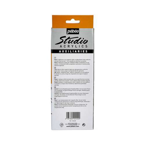 pébéo Acrylics Studio Modellierpaste ist eine dickflüssige, deckende Paste mit Krakeliereffekt. Auftrag mit dem Malmesser. Pur oder in Mischung mit Studio Acrylics Farben verwendbar.