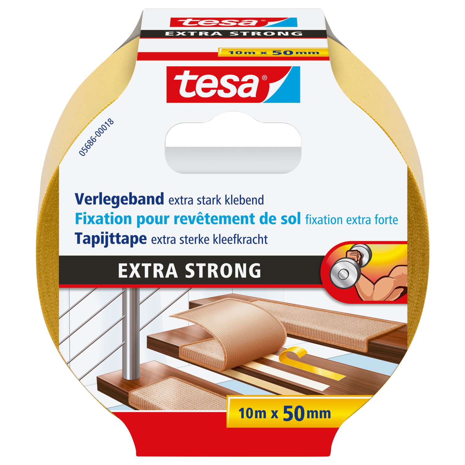 Das doppelseitige tesa® Verlegeband ist die ideale Lösung, um Teppiche, Läufer oder PVC-Beläge sicher und dauerhaft zu befestigen. Mit seiner extra starken Klebkraft sorgt es für zuverlässigen Halt auf verschiedensten Untergründen, ob im Wohnbereich, in der Küche, im Flur oder auf Treppen.